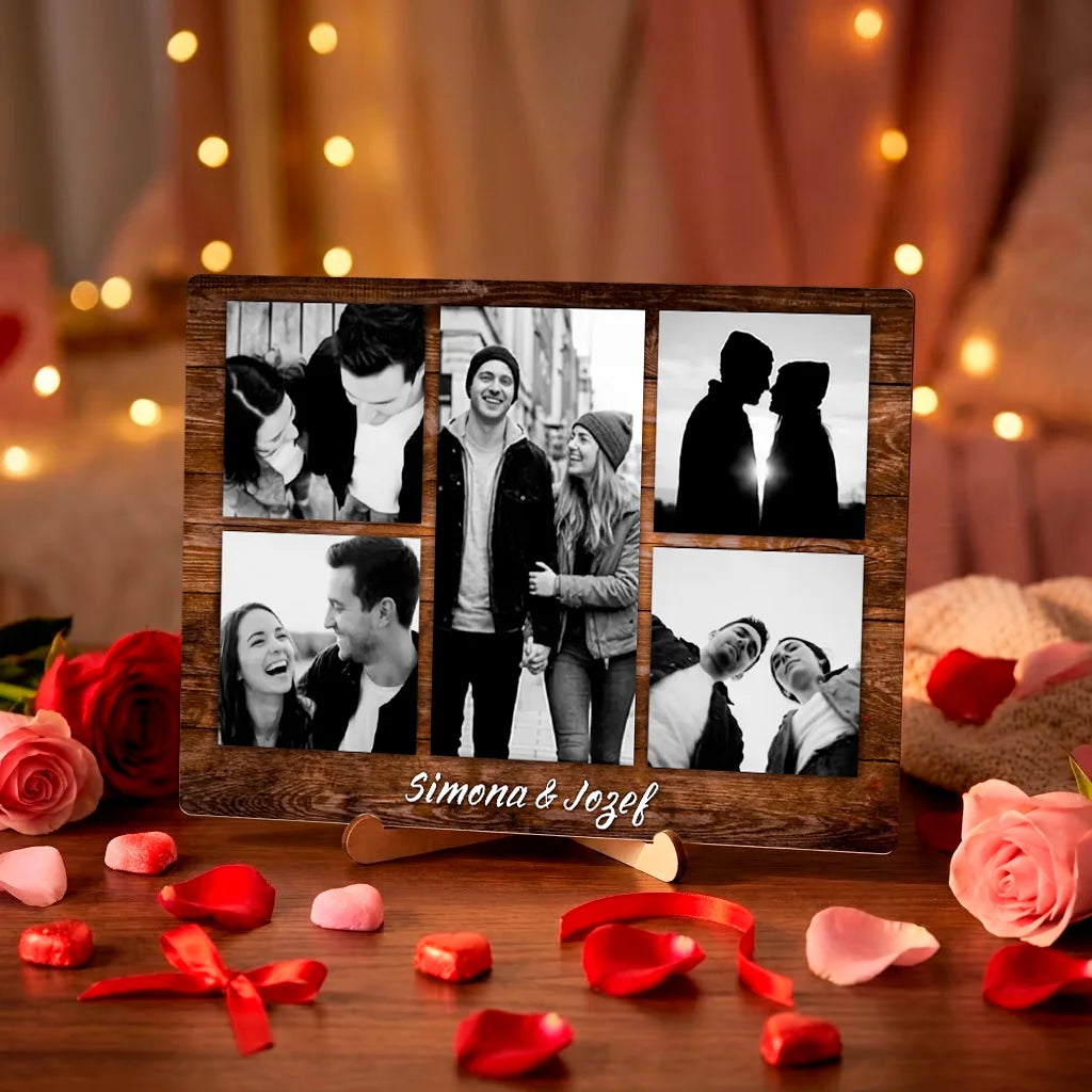 Personalizovaná stolová dekorácia s fotokolážou a menami