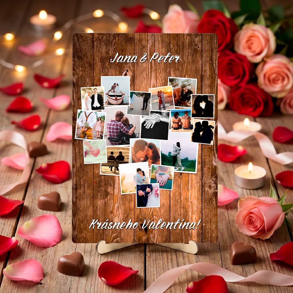 Personalizovaná stolová dekorácia so srdcovou fotokolážou – vlastné fotografie a text